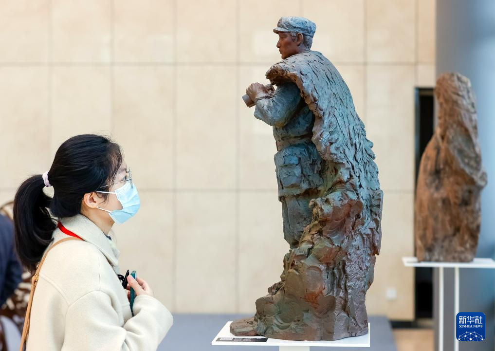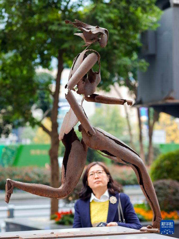 11月30日,人们在欣赏首届天府雕塑展上展出的作品。