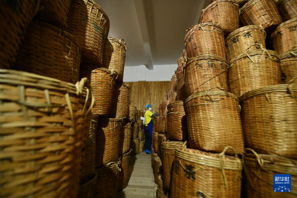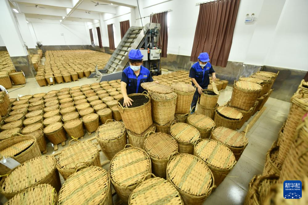 在梧州芙叶茶叶股份有限公司,工人在陈化仓作业(6月8日摄)。