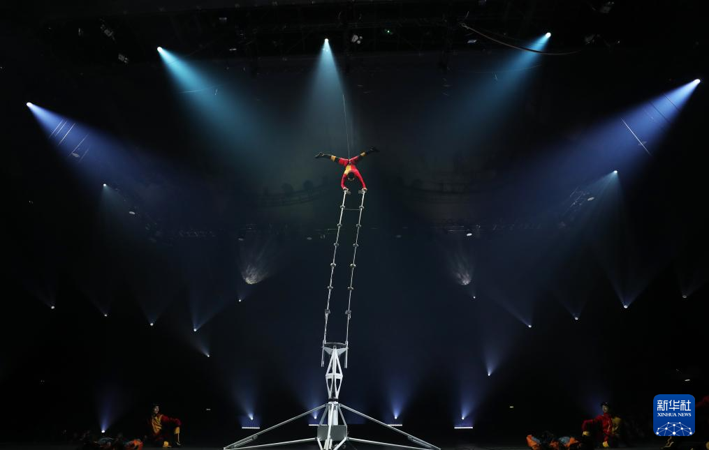 12月8日,演员在法国巴黎举行的中国杂技“奇妙之夜”演出上表演《高椅》。