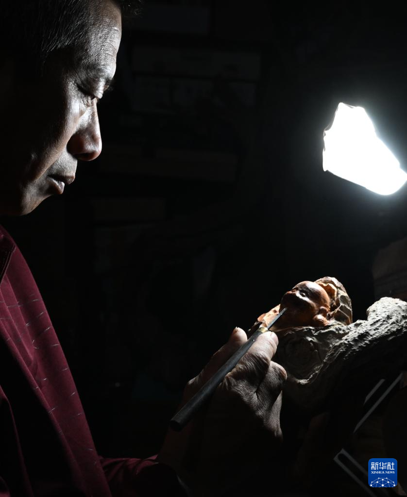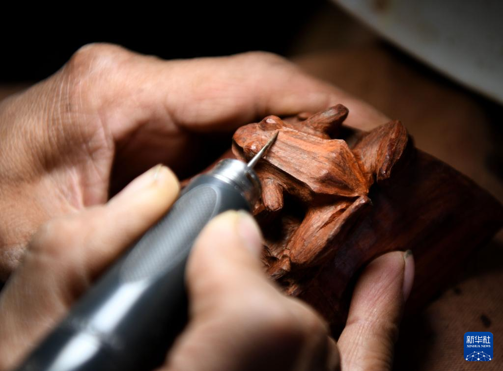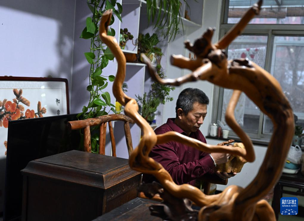 李明军是河北省隆化县一位根雕艺人。他从事根雕行业近30年,不起眼的树根,经过他“三分雕刻,七分天然”的修饰,成为一件件美轮美奂的艺术作品。