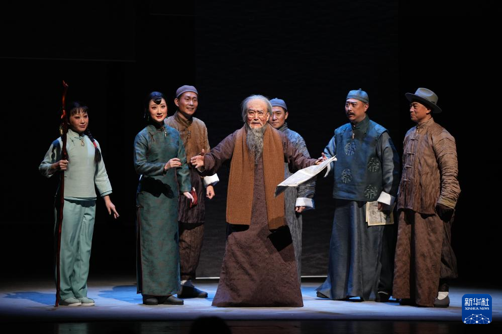 演员在北京长安大戏院表演新编京剧《齐白石》(12月16日摄)。