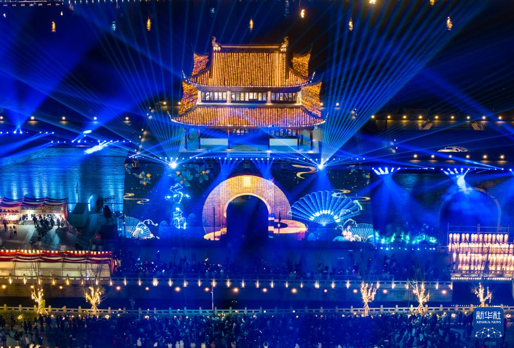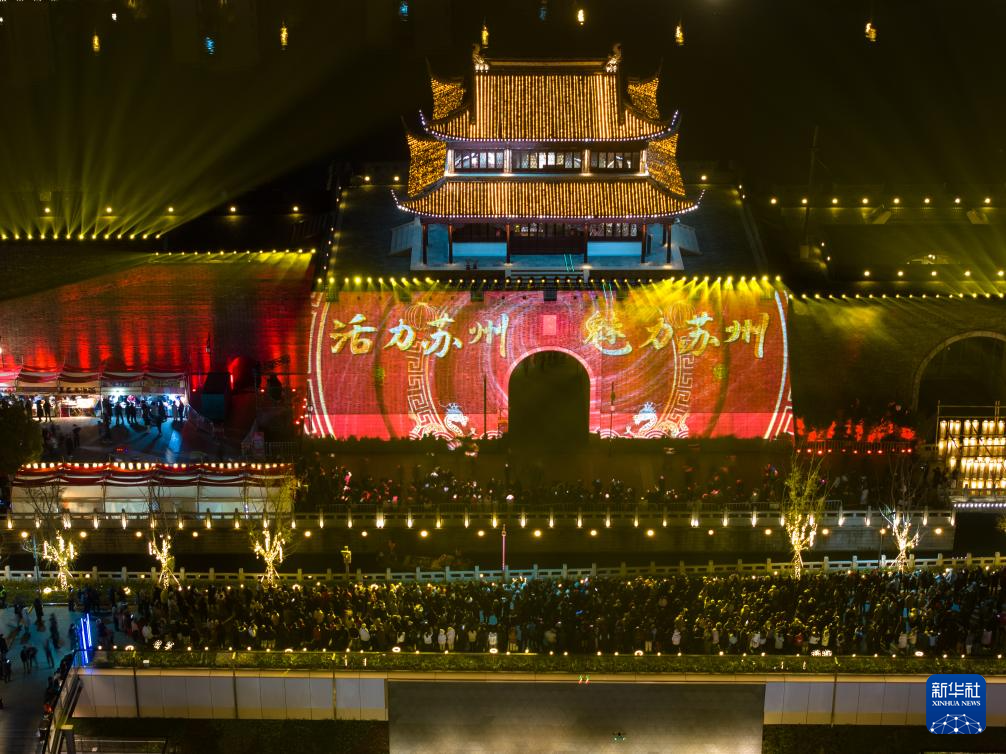 近日,江苏苏州相门古城墙灯光秀闪亮登场。灯光秀以古城墙为幕,为市民献上一场光电视觉盛宴。
