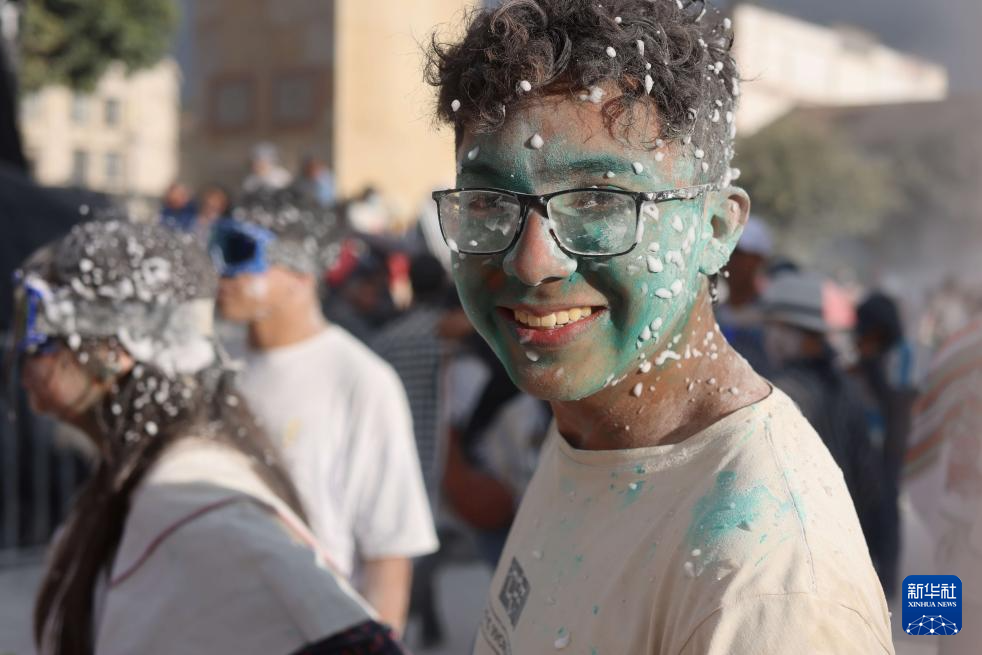 1月3日,一名男孩在哥伦比亚帕斯托参加“黑与白”狂欢节活动。