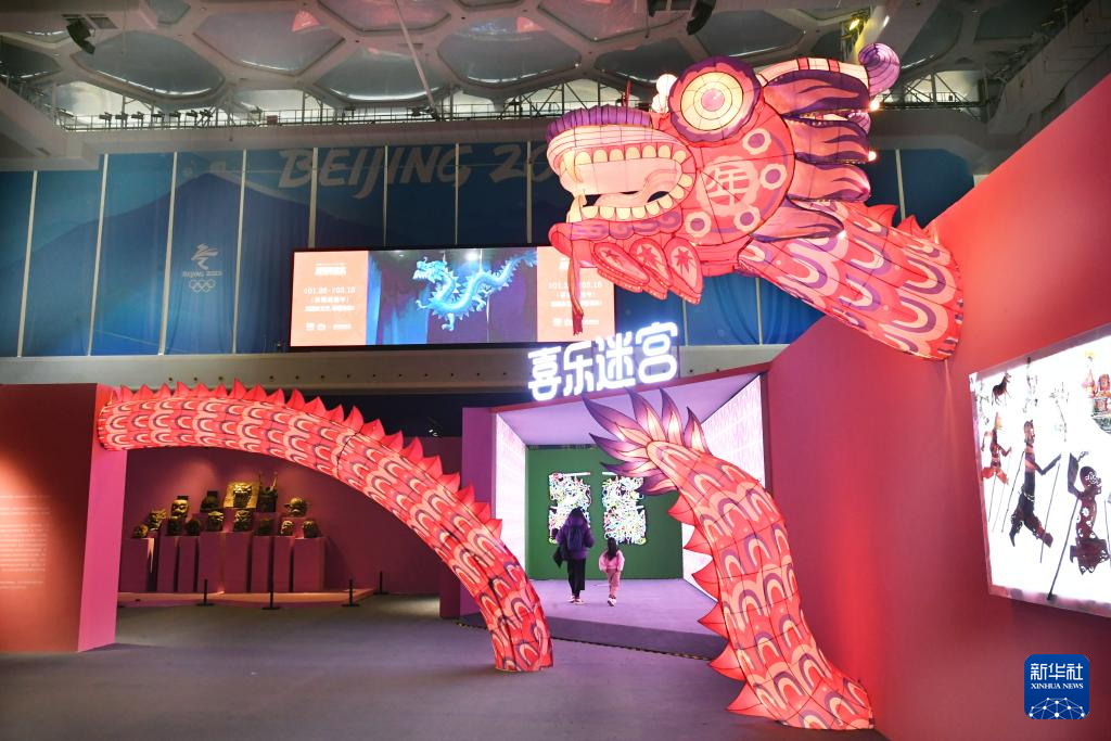 近期,“龙耀水立方,喜乐过龙年”跨年展览在位于北京市朝阳区的国家游泳中心“水立方”比赛大厅池岸层举办。展览以“龙”为核心要素,汇集了与龙相关的200余件文物,市民还可以体验多种互动项目,展览将持续至3月15日。