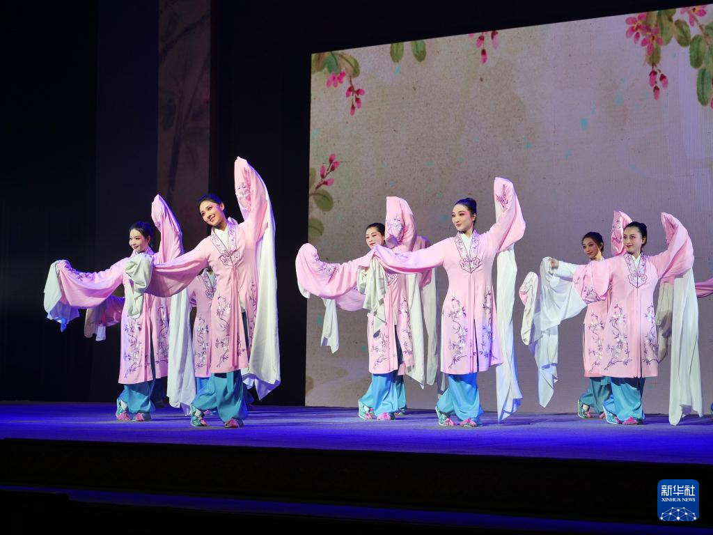 中国戏剧梅花奖获得者周虹《双蝶扇》选段的表演中(2月5日摄)。