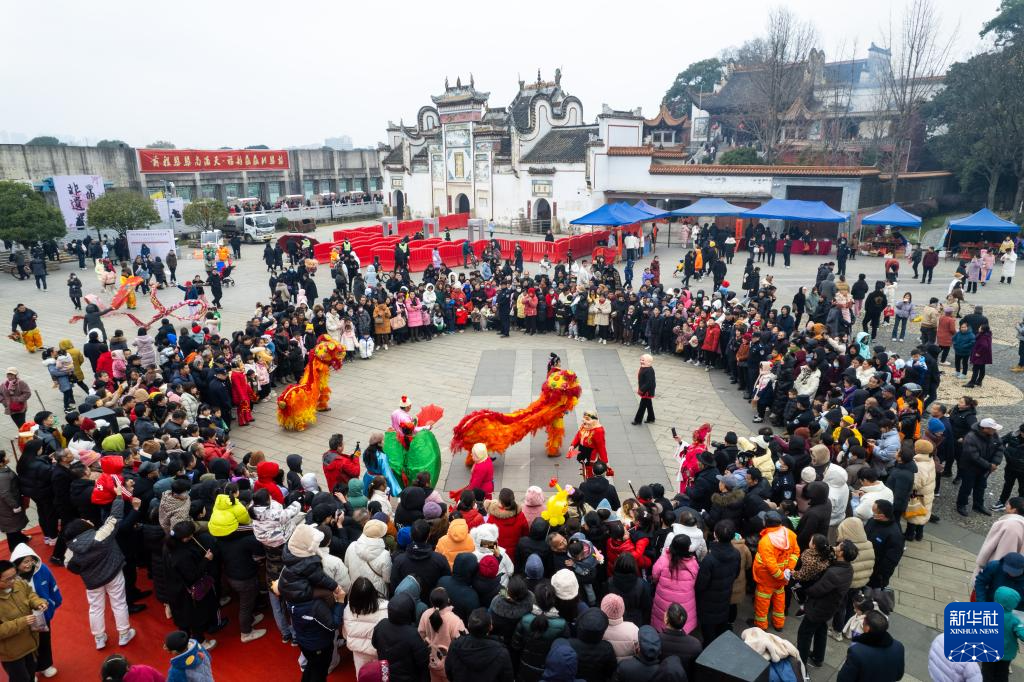 这是2月22日在长沙县㮾梨街道陶公庙前坪拍摄的庙会活动现场(无人机照片)。