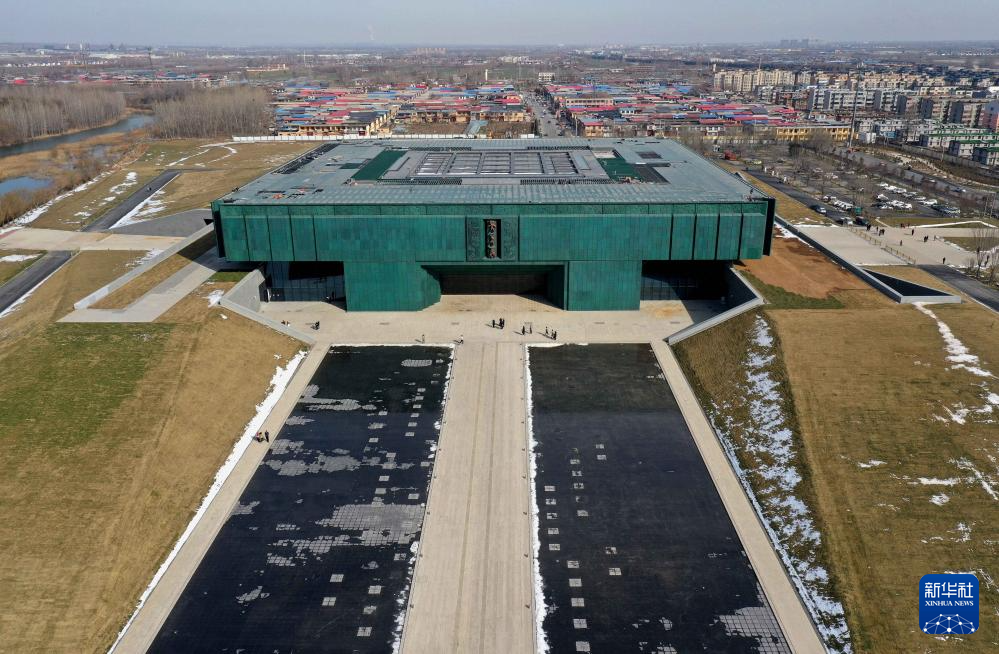 河南安阳殷墟博物馆新馆(无人机照片,2月23日摄)。