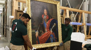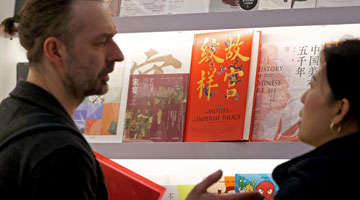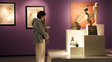 3月15日,在马耳他瓦莱塔,参观者在马耳他艺术双年展中国馆观看展出的作品。