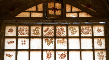 3月18日,贵州省榕江县栽麻镇大利侗寨的村民在晾晒侗布。