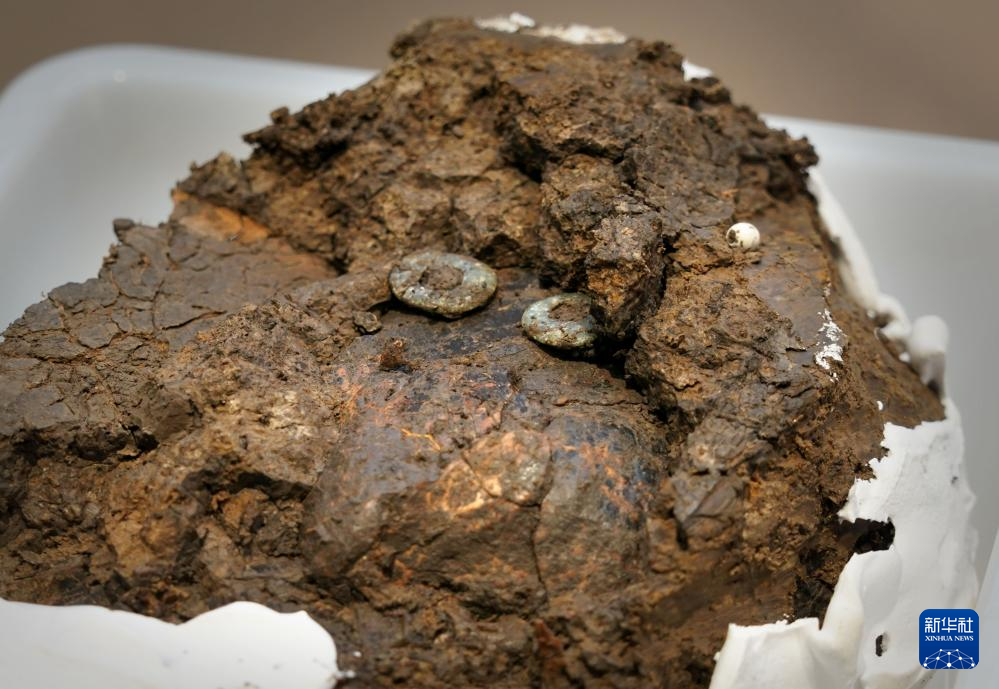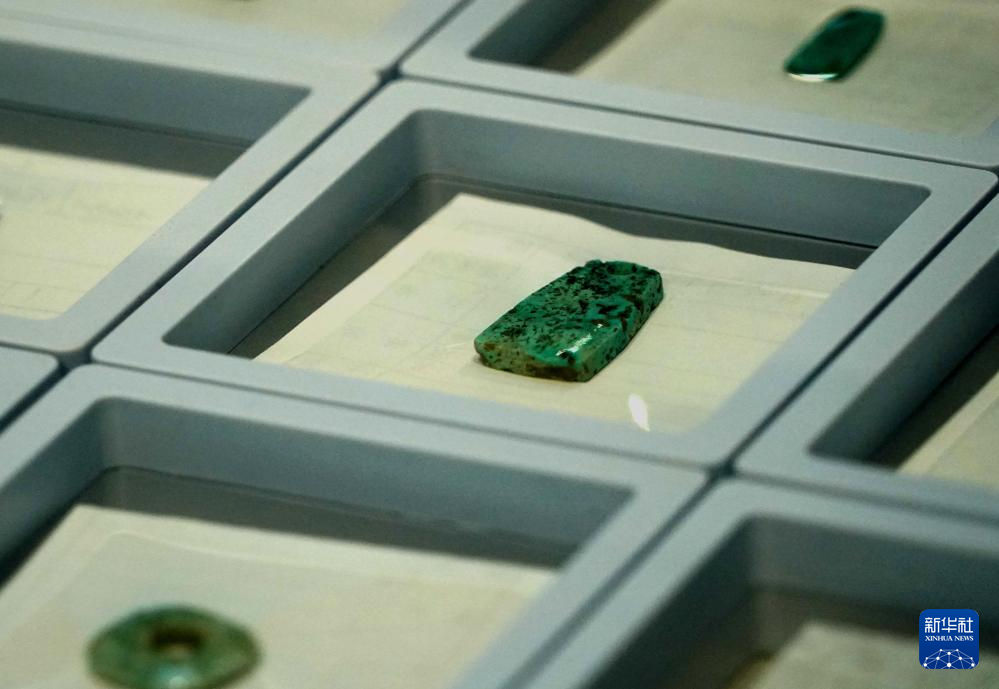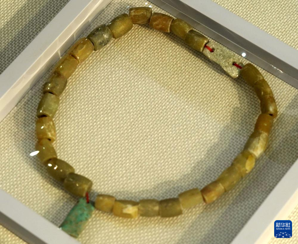 这是王庄遗址出土的玉串饰(1月30日摄)。