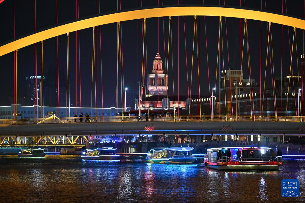 当晚,“运河向津来”——第七届天津海河文化旅游节启幕。本届海河文化旅游节以海河观光带为主轴,以运河文化、桥梁文化、津韵文化为核心,将游览参观与步入式赏景、沉浸式体验、文创演艺等相结合,将持续至4月30日。