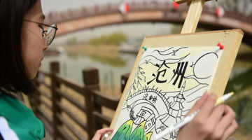 4月1日,学生在贵州省黄平县旧州古镇一家非遗工坊体验泥哨制作。
