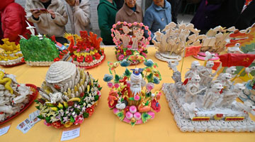 4月1日,在贵州省黄平县旧州古镇一家非遗工坊,民间艺人指导学生制作泥哨。