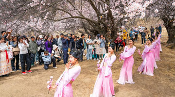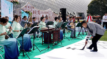 在太原市迎泽区庙前街,武凌云在文化展演活动上表演(2月23日摄)。