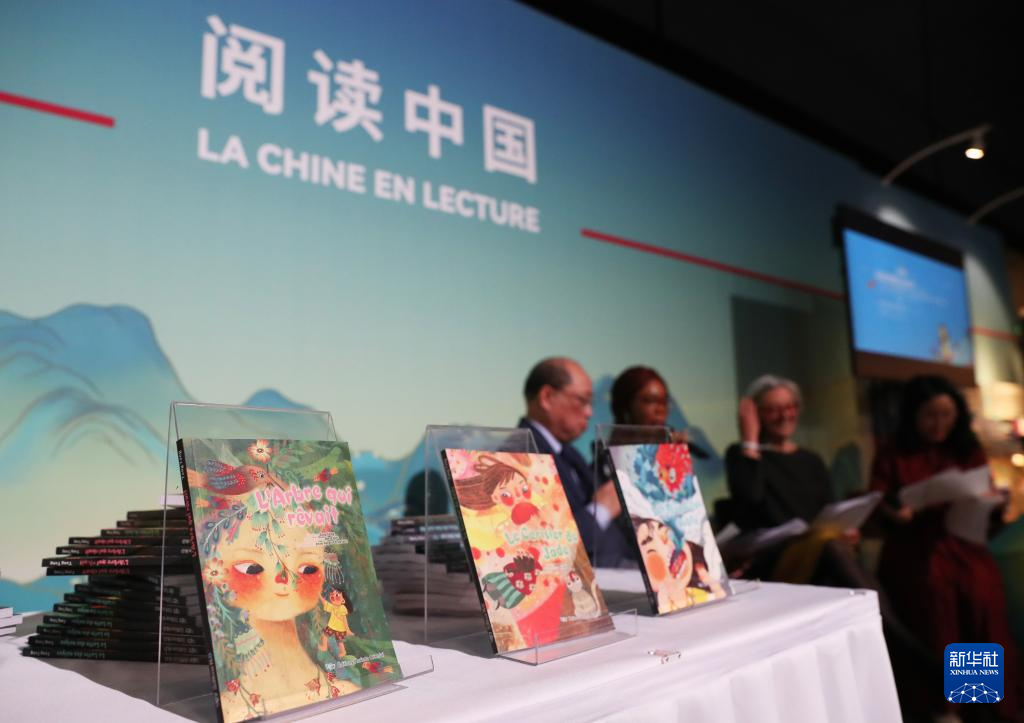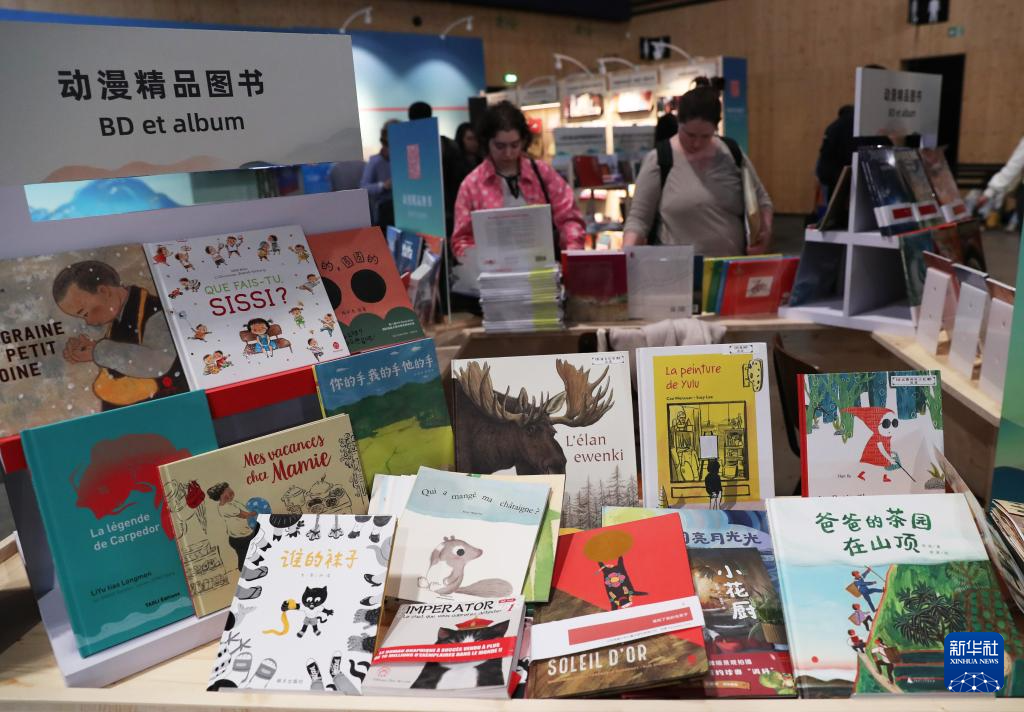 这是4月12日在法国巴黎临时大皇宫举行的2024巴黎书展上拍摄的中国图书。