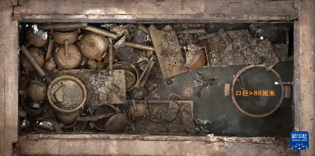 这是安徽淮南武王墩主墓椁室盖板揭露完毕后的情况。