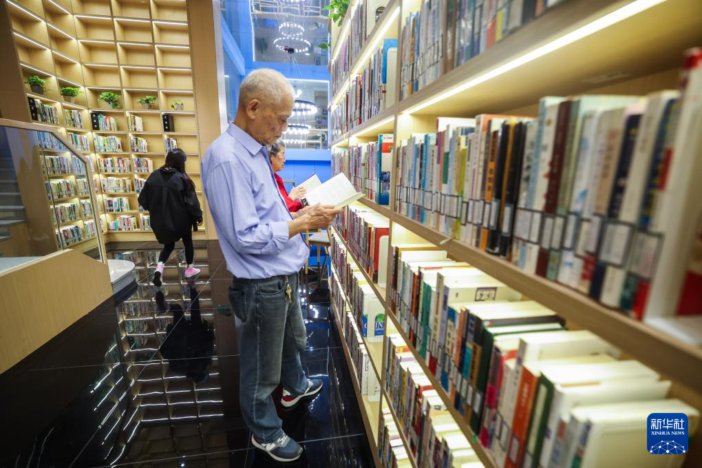 4月16日,在嘉兴市南湖区东栅街道南江社区智慧书房的二楼阅读区,党员志愿者给老年人举办科学养生的主题读书会。