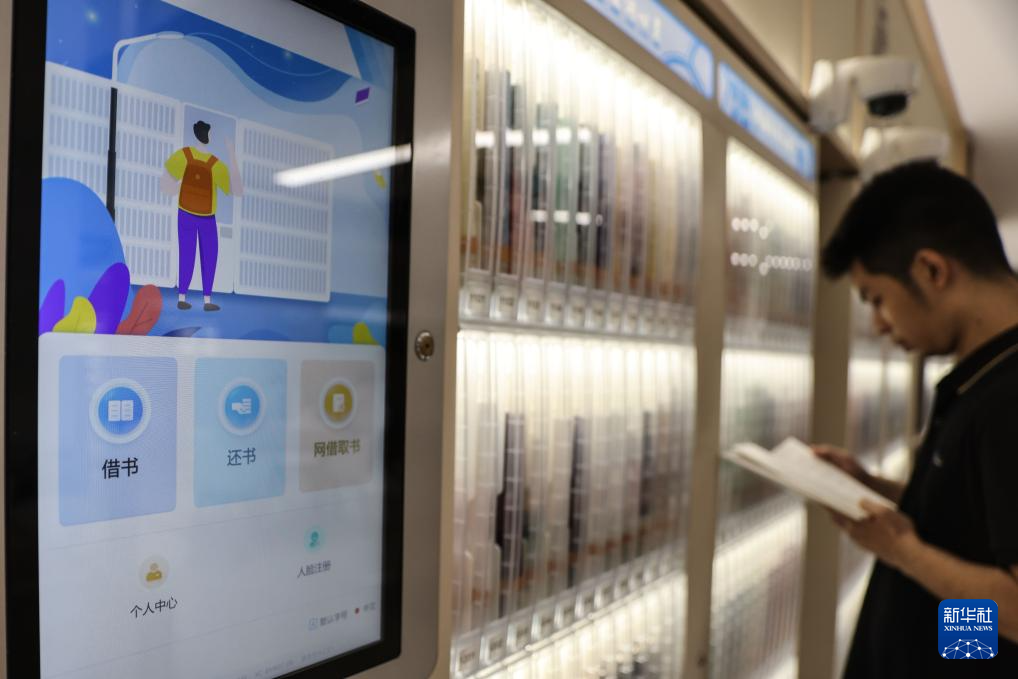 4月23日,读者在海南省图书馆24小时自助图书馆内阅读。