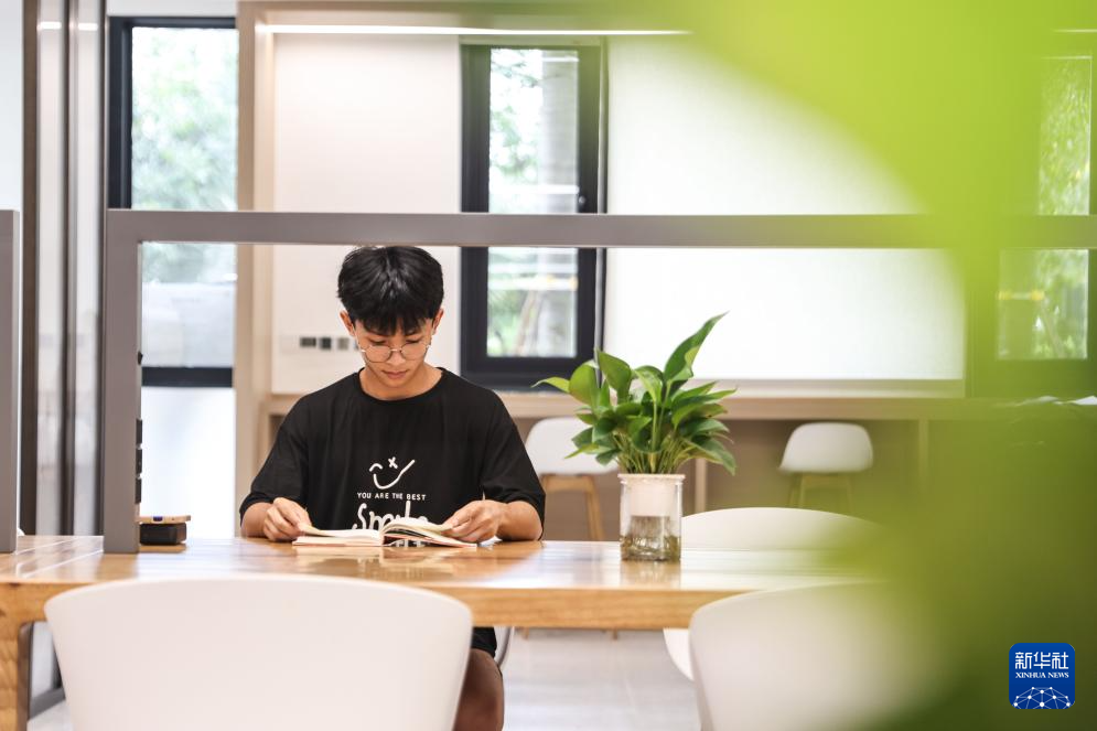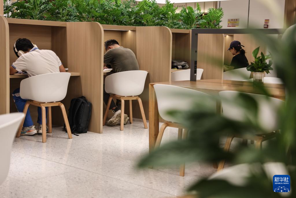 4月23日,读者在海南省图书馆24小时自助图书馆内学习。