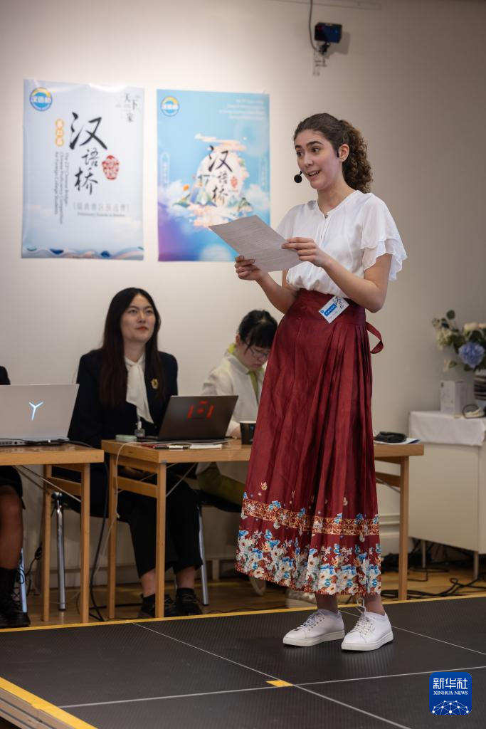 5月5日,在瑞典首都斯德哥尔摩的中国文化中心,参赛学生进行中文水平和才艺展示。