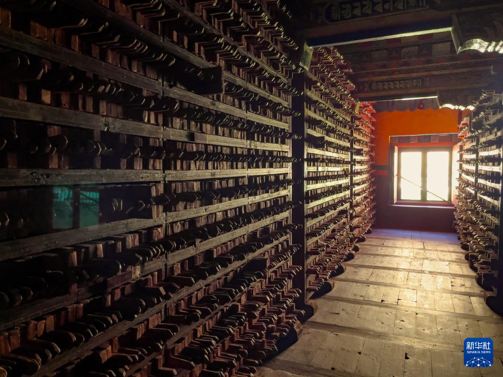 在四川省甘孜藏族自治州德格县拍摄的德格印经院院藏雕版(2021年10月3日摄)。