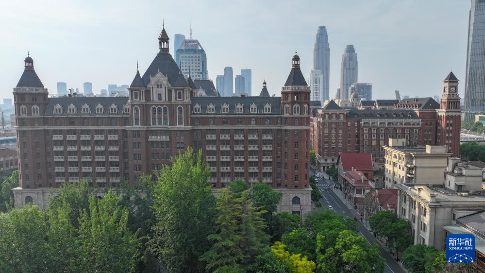 这是坐落于解放北路历史文化街区的一处欧式城堡风格建筑(5月6日摄,无人机照片)。