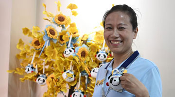 5月14日,游客在吐鲁番博物馆文物数字展示区参与互动。