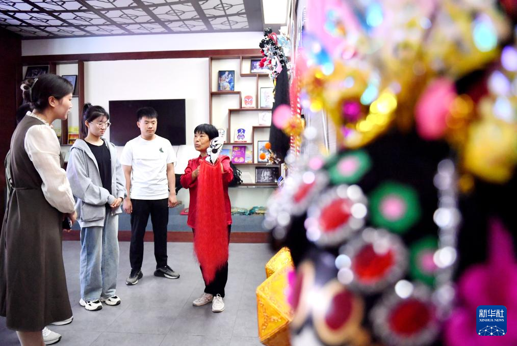 5月15日,时敬华(右一)在威县乱弹纪念馆为戏曲爱好者介绍乱弹知识。