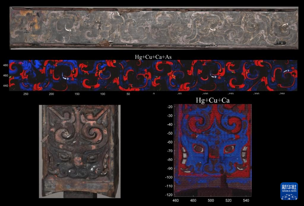 武王墩墓出土的漆器及其纹饰与图案的信息提取(5月14日摄)。新华社发