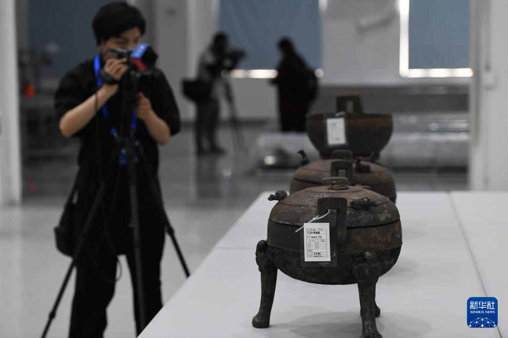 5月20日,考古人员在武王墩考古实验室展示出土文物。
