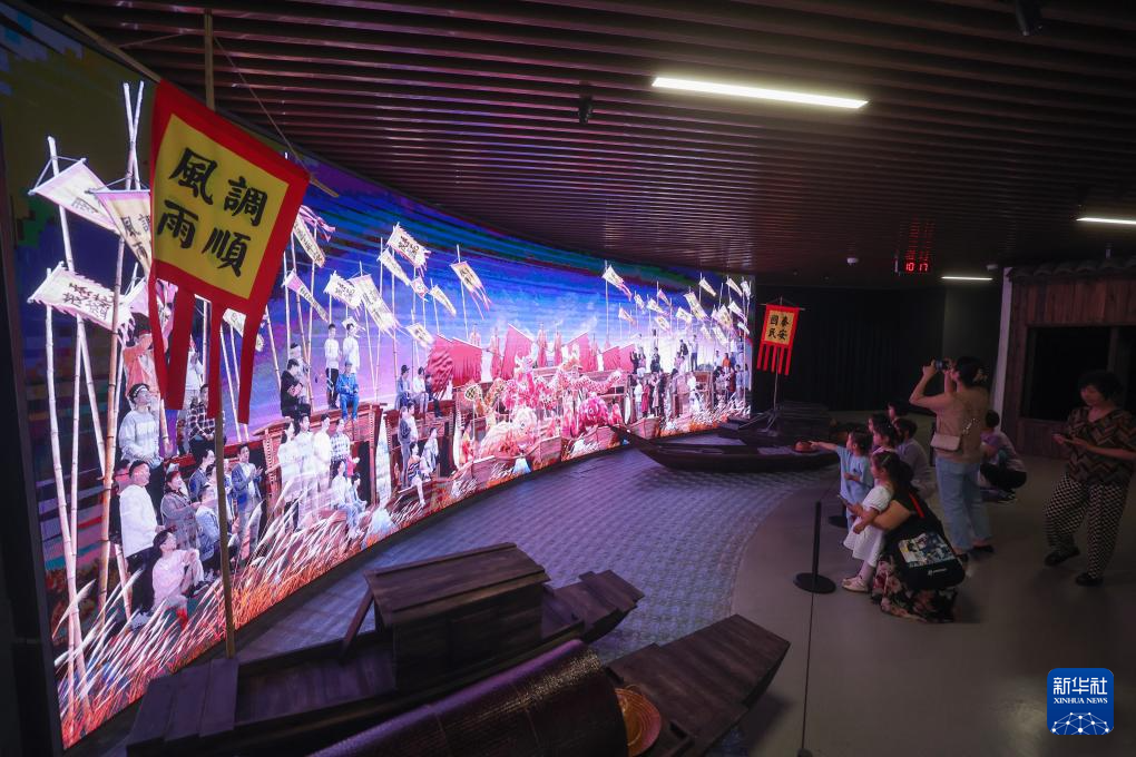 6月12日,观众在位于嘉兴市艺术文化中心的秀洲非遗馆内观看非遗民俗展示。