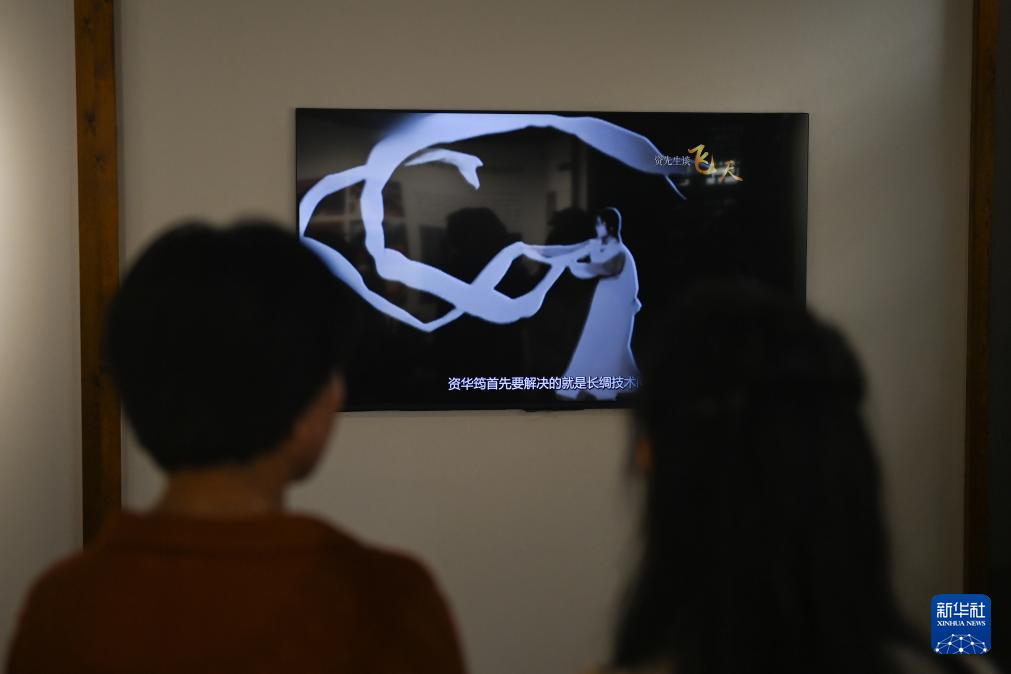 6月16日,观众在资华筠舞蹈艺术馆观看访谈视频资料。