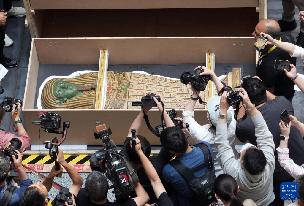 当日,来自埃及国家博物馆的埃赫那吞半身像、萨卡拉考古遗址的彩绘人形棺,率先在上海博物馆人民广场馆进行开箱亮相。