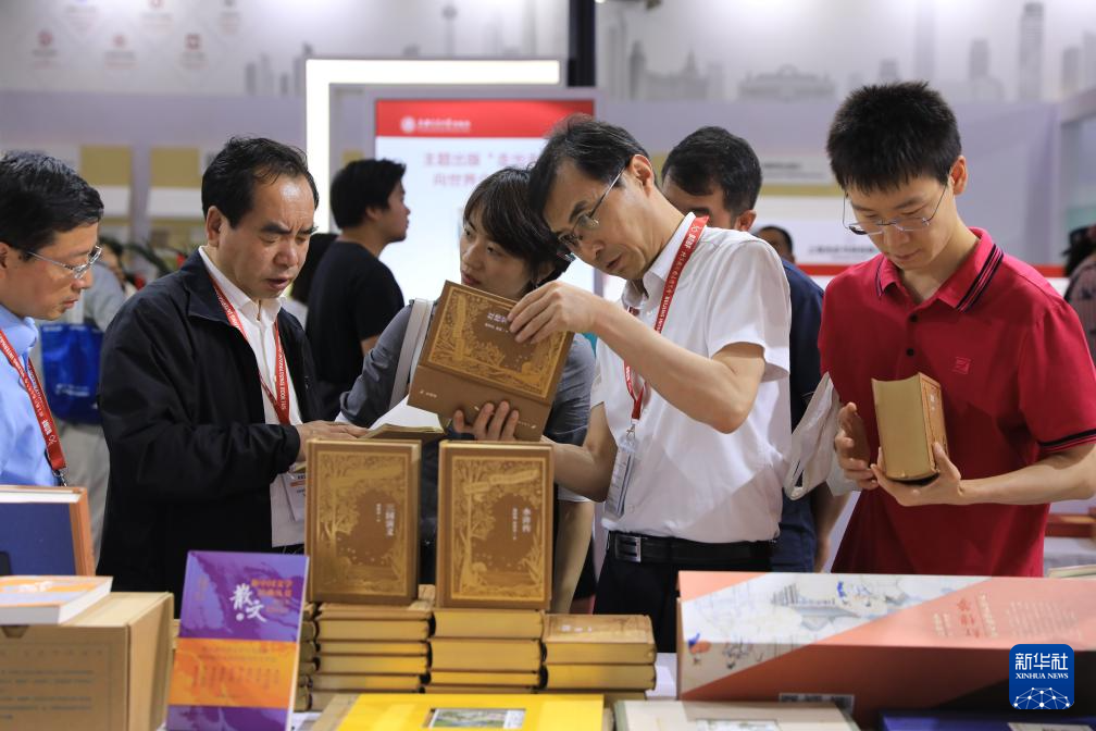 6月19日,读者在第三十届北京图博会“中国作家馆”翻阅图书。