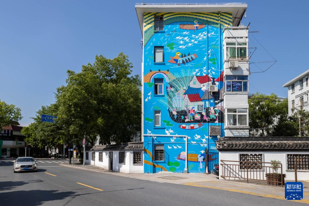 6月18日在枫泾古镇附近拍摄的金山农民画。新华社记者 王翔 摄