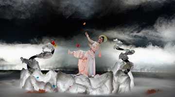6月27日,武师在菏泽郓城水浒好汉城表演武术。新华社记者 刘力航 摄