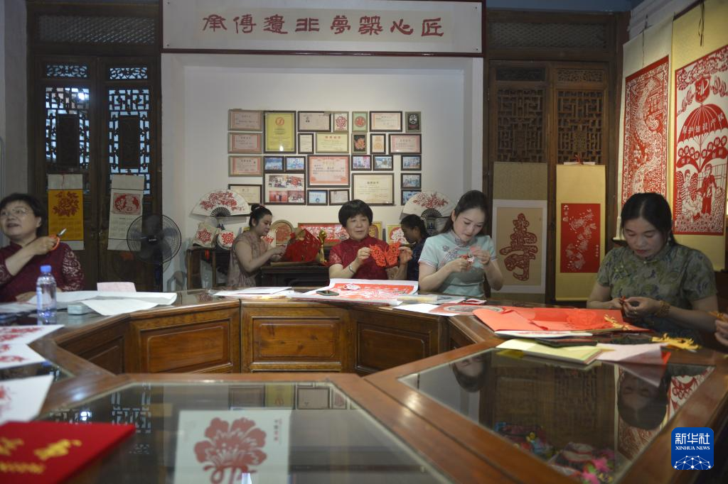 6月27日,工艺师在山东菏泽制作剪纸作品。新华社记者 刘力航 摄
