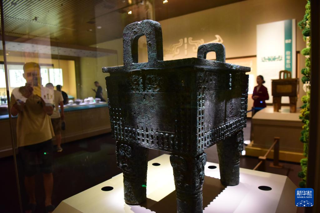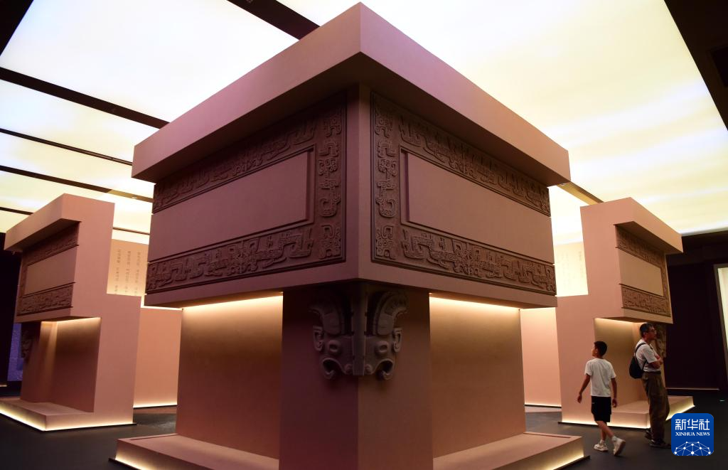 7月1日,游客在河南安阳殷墟博物馆新馆内参观。