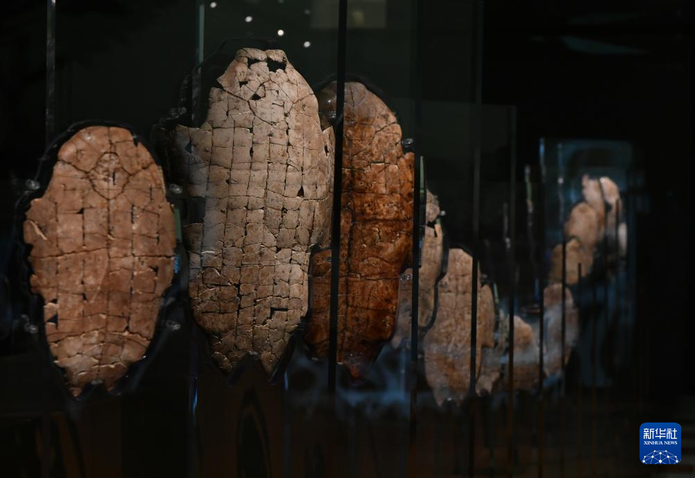 这是在殷墟博物馆新馆拍摄的考古发掘出土的甲骨文骨片(7月1日摄)。
