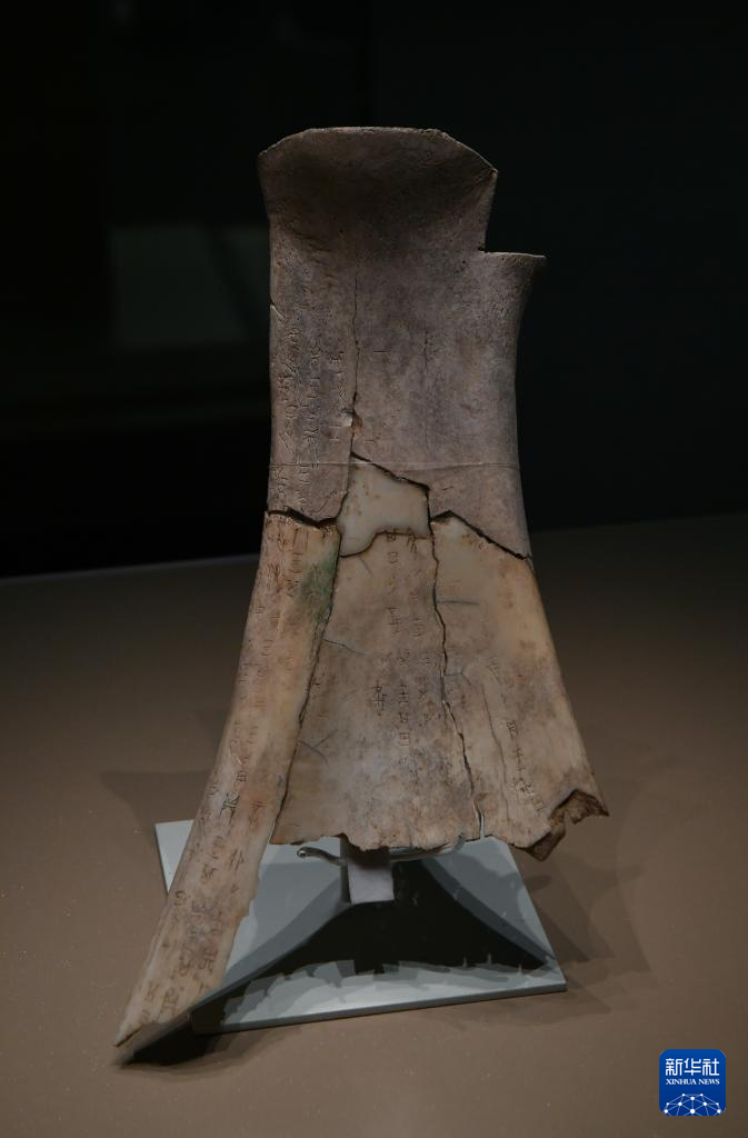 这是在殷墟博物馆新馆拍摄的1973年安阳小屯出土的刻辞卜骨,是该博物馆的镇馆之宝之一(7月1日摄)。