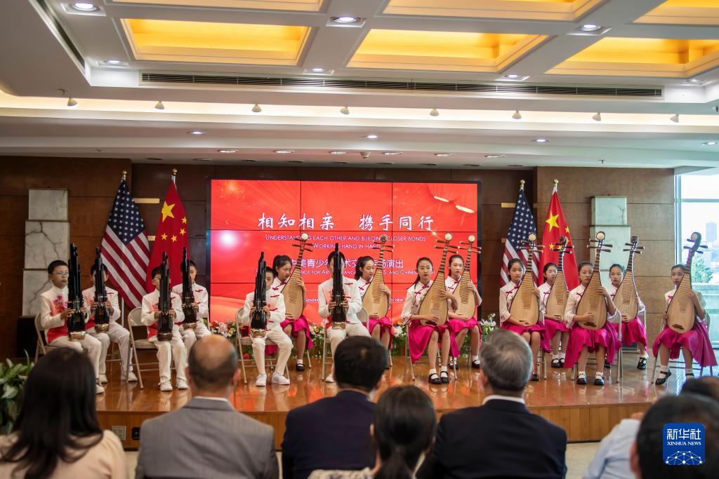 新华社纽约7月13日电(记者刘亚南)中国驻纽约总领馆13日举办“相知相亲·携手同行”艺术交流演出。北京金帆艺术团及纽约市哈德森威沉浸式双语学校、布鲁克林技术高中、华夏中文学校等15所当地中小学和中文学校约300名师生参加活动。