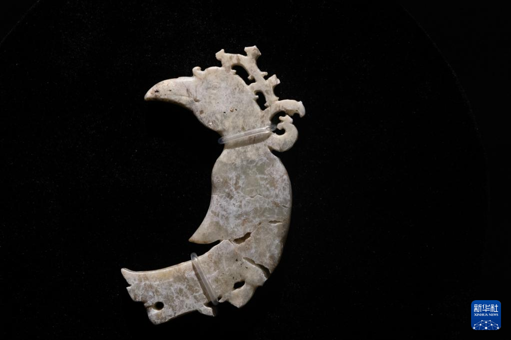这是7月28日在重庆中国三峡博物馆举行的“玉出大江——长江流域史前玉器特展”上拍摄的肖家屋脊文化玉凤。