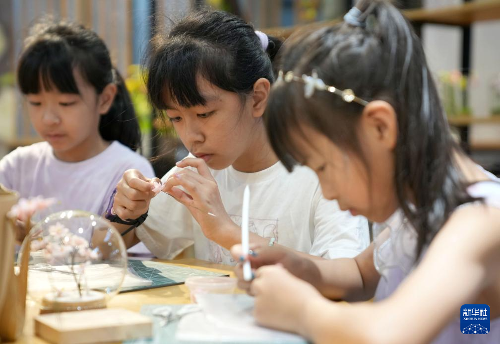 暑假期间,不少小朋友前往位于杭州桥西历史文化街区的手工艺活态馆进行非遗手工体验,感受非物质文化遗产的魅力,丰富假期生活。