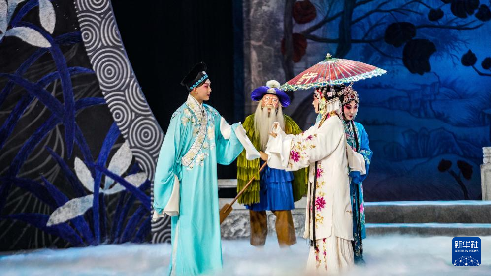 8月29日,京剧演员在吉林市人民大剧院表演京剧《白蛇传》选段。