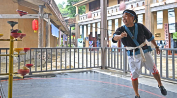 9月3日,演员在科威特艾哈迈迪省举行的“天涯共此时·湘约中东”文艺演出活动上表演杂技。