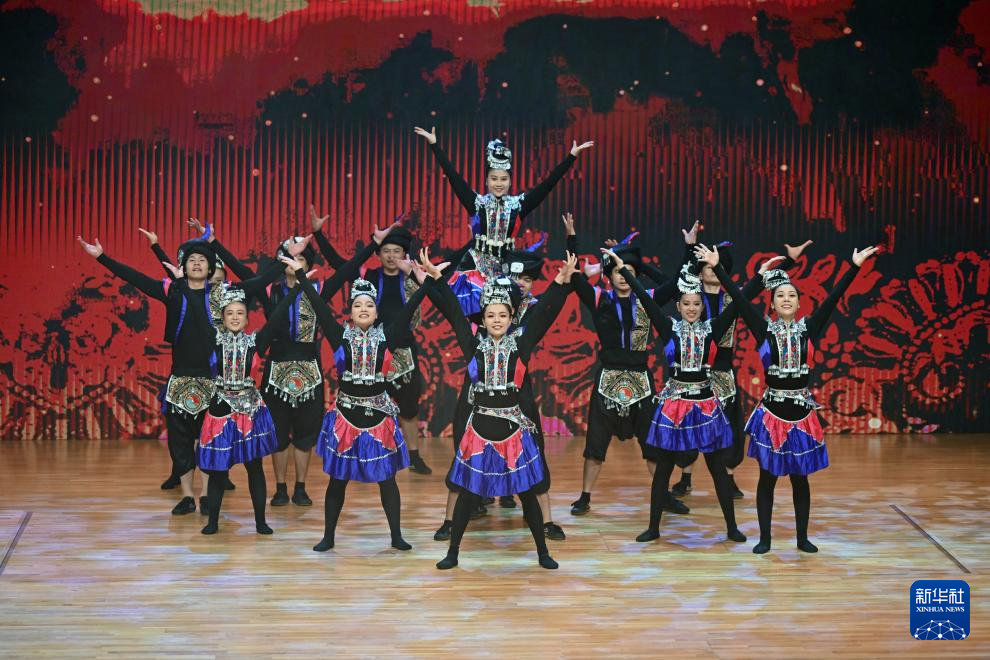 9月3日,演员在科威特艾哈迈迪省举行的“天涯共此时·湘约中东”文艺演出活动上表演民族歌舞。新华社发(阿萨德摄)