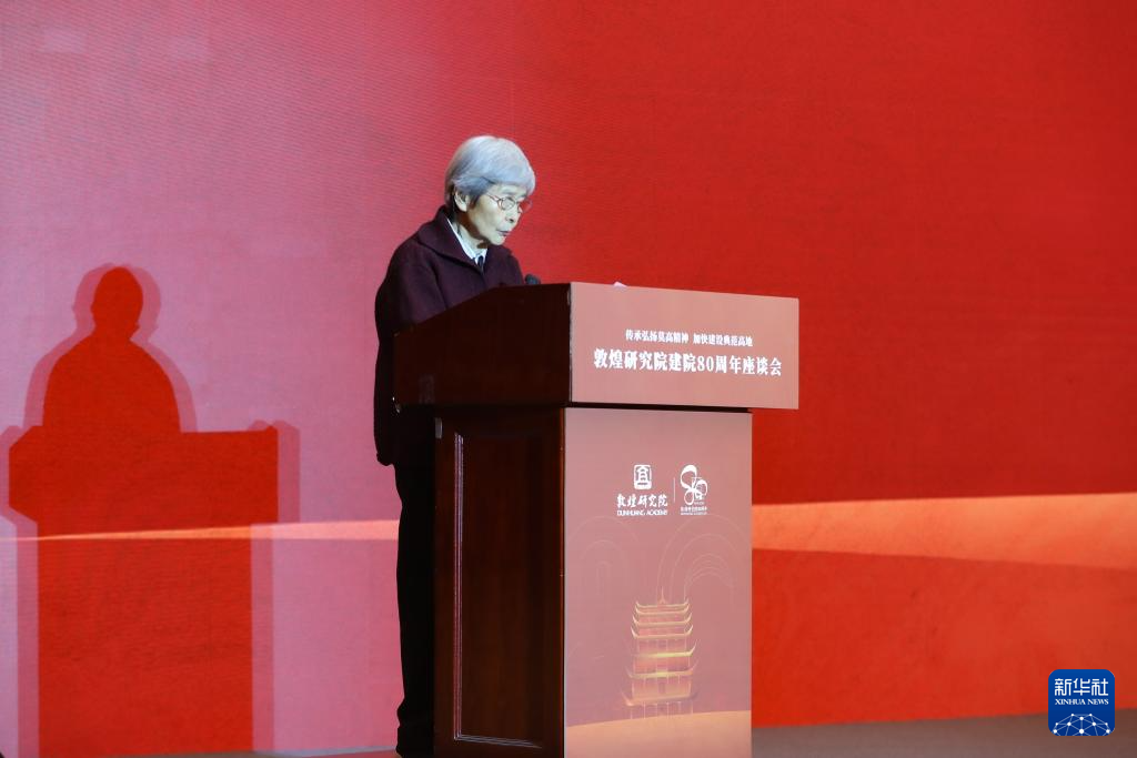 当日,以“传承弘扬莫高精神 加快建设典范高地”为主题的敦煌研究院建院80周年座谈会在甘肃省敦煌市举行。来自敦煌研究院、国家文物局、甘肃省有关部门、国内高校、文博单位以及国内外合作机构的近400名代表参加座谈会。