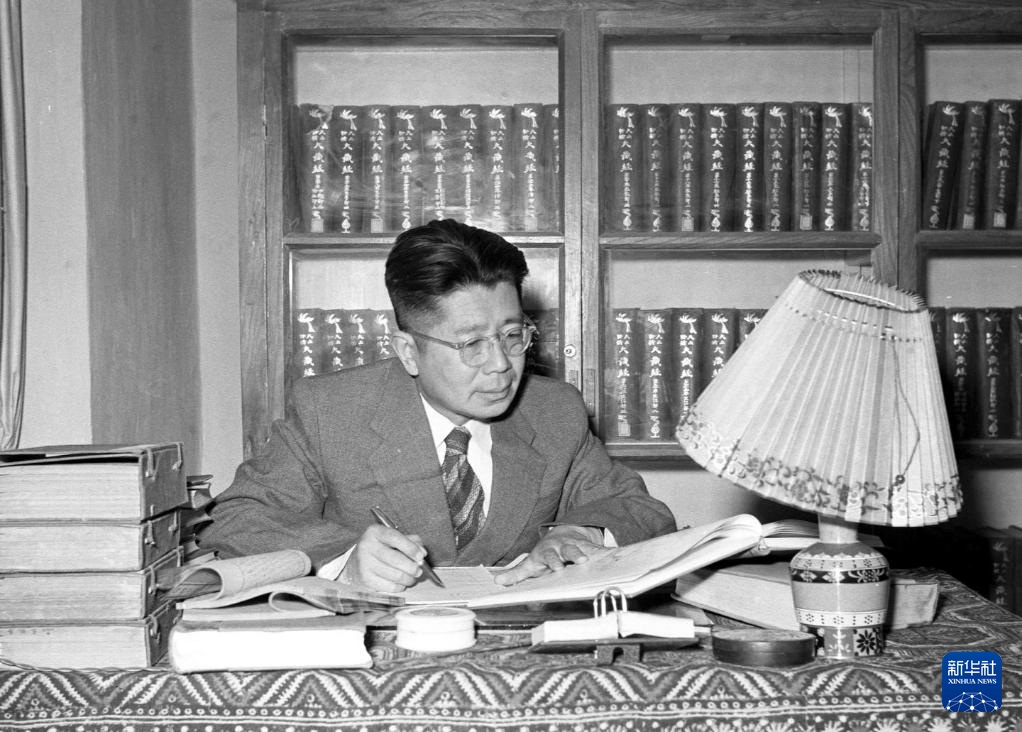 1956年,常书鸿在进行文物研究工作。新华社记者 刘庆瑞 摄