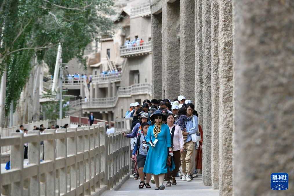 2024年6月7日,游客在莫高窟参观游览。新华社记者 郎兵兵 摄