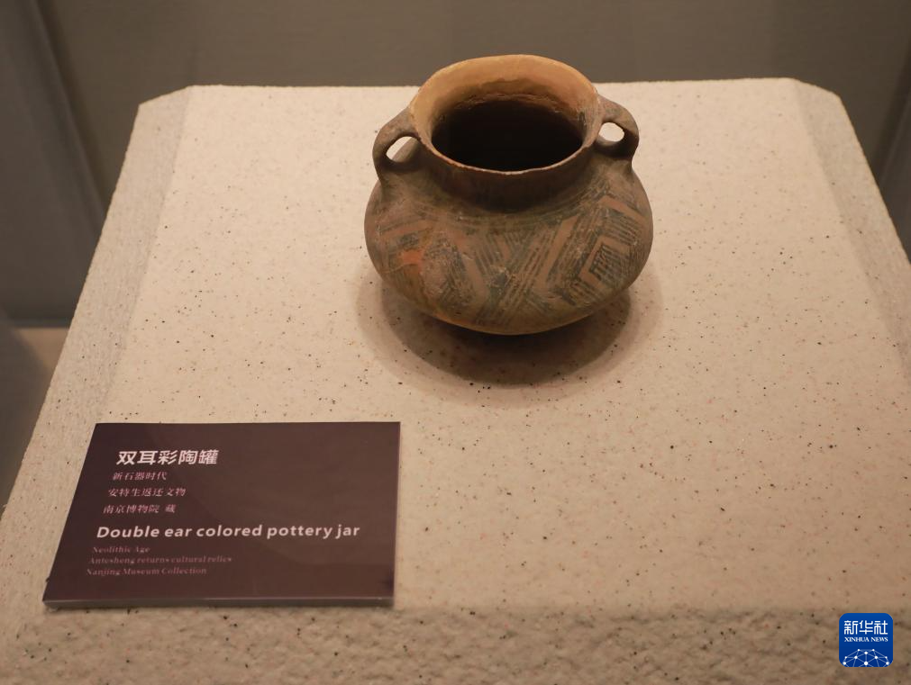 这是9月26日拍摄的安特生返还文物马家窑双耳彩陶罐。